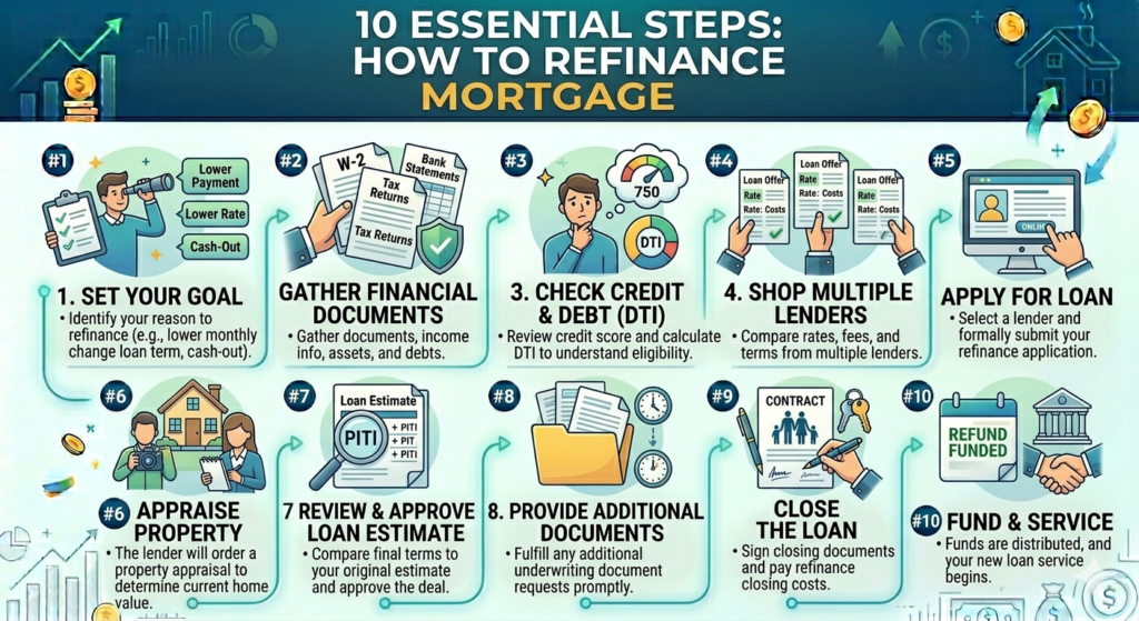 In this comprehensive guide, we’ll break down how to refinance mortgage, explore the types of refinancing, discuss eligibility, walk through the process step-by-step, provide examples, and answer frequently asked questions.